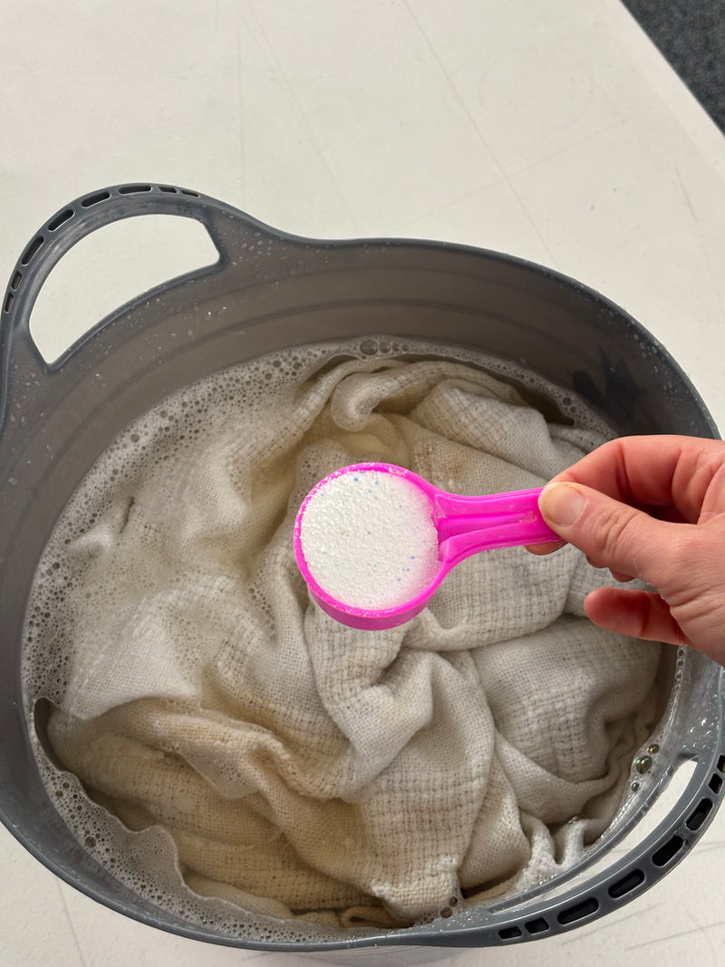 For tougher stains, whites, especially old tea towels, soak them overnight!!