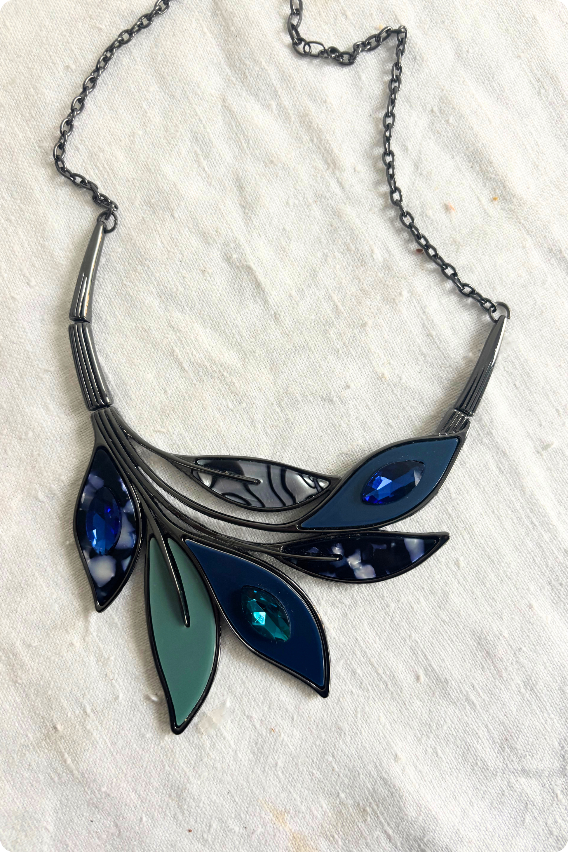 - Description: Adorned with a unique faux stained glass style plant pendant, this necklace is a one-of-a-kind accessory that will add a touch of color and elegance to any outfit. Crafted with expert precision, it's a must-have for any fashion-forward individual looking to make a statement.