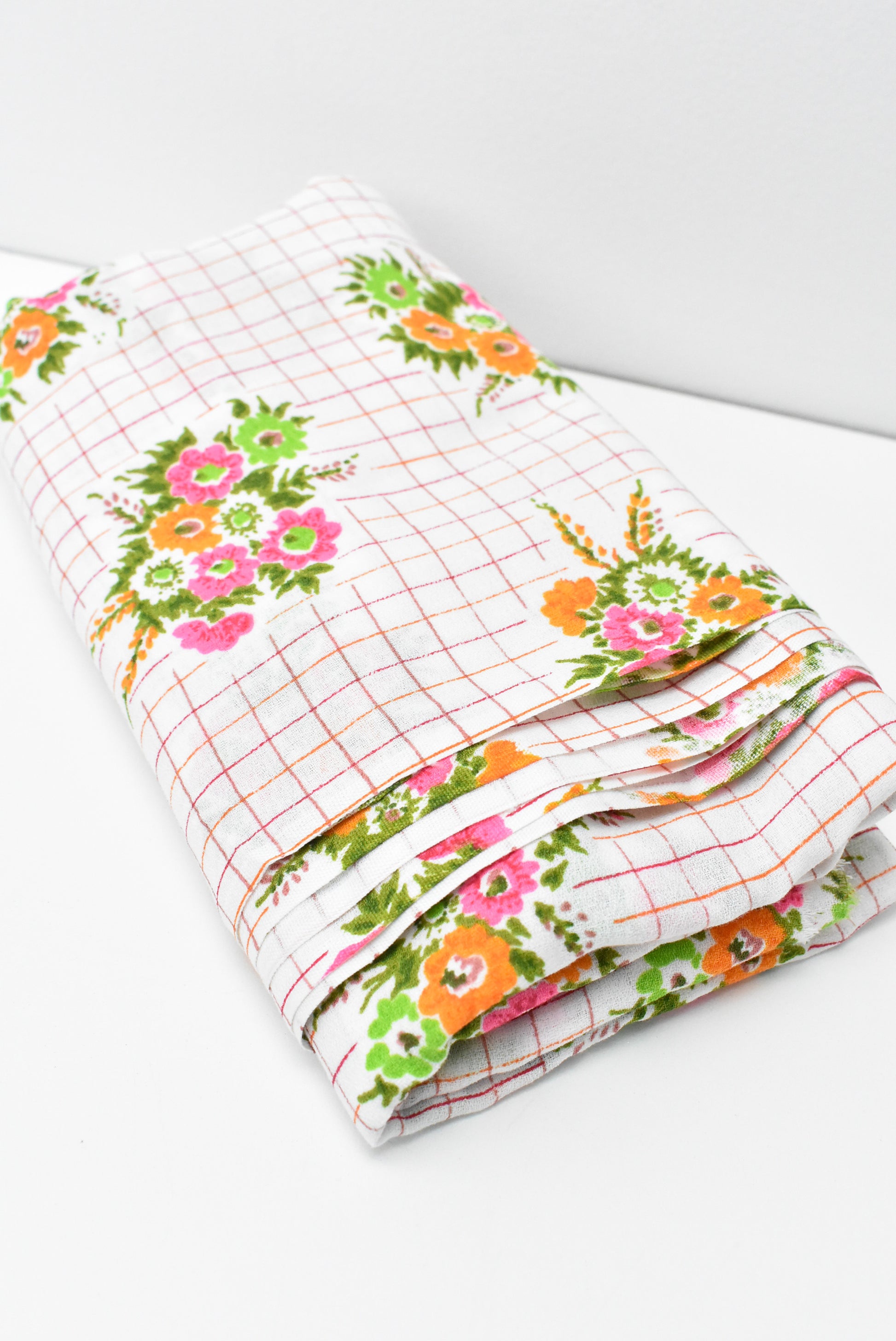- Description: Retro fabric, florals on a checked background. Enough to make a top or decorative panels on a dress.